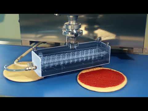 Though not the most recent video of our pizza sauce depositor, it does explain the basic technology very well. More info here